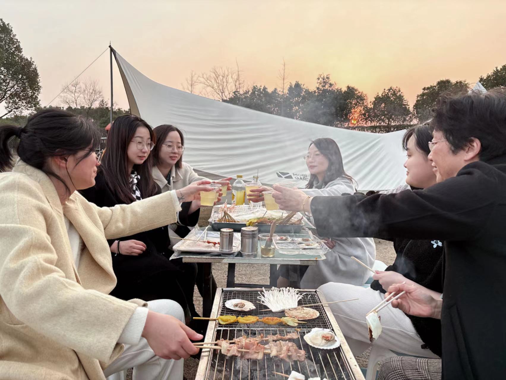 大家围坐在烧烤架旁,享受着美食与友情的双重盛宴。炭火燃烧着热情与激情,她们一边品尝着美味佳肴,一边畅谈着工作与生活中的点点滴滴。在这片温馨而浪漫的氛围中,她们的心灵得到了深深的滋养与慰藉。